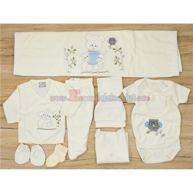 Misimosi 0-3 Ay 10 Parça Bebek Zıbın Seti Ayıcıklı Mavi Krem