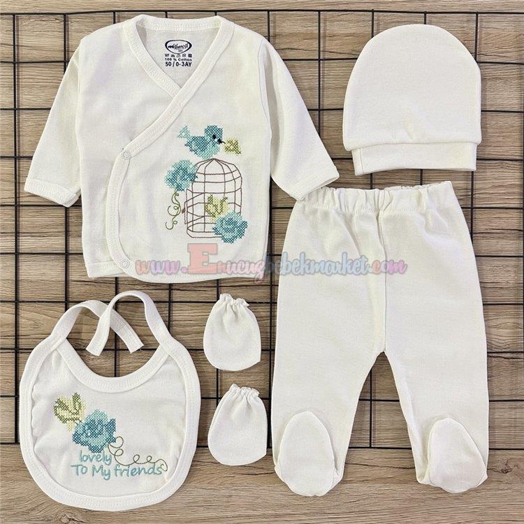 Misimosi 0-3 Ay Kanaviçeli 5 Parça Zıbın Takım Turkuaz