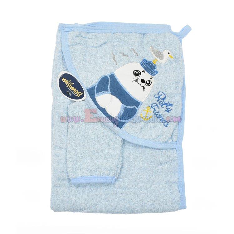Misimosi 75X75 Cm Fok Nakışlı Bebek Banyo Havlusu K.Mavi