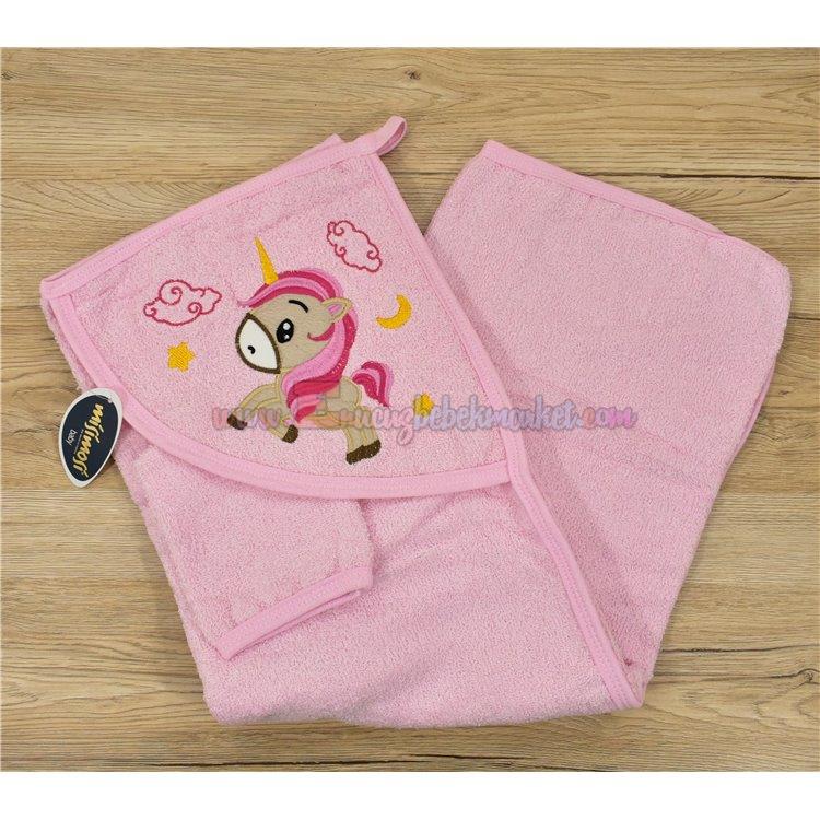 Misimosi 75X75 Cm Pony Nakışlı Bebek Banyo Havlusu Pembe