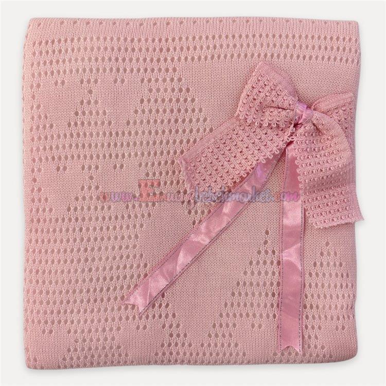 Mızmız 90X80 Cm Triko Bebek Battaniye Fiyonk Pembe