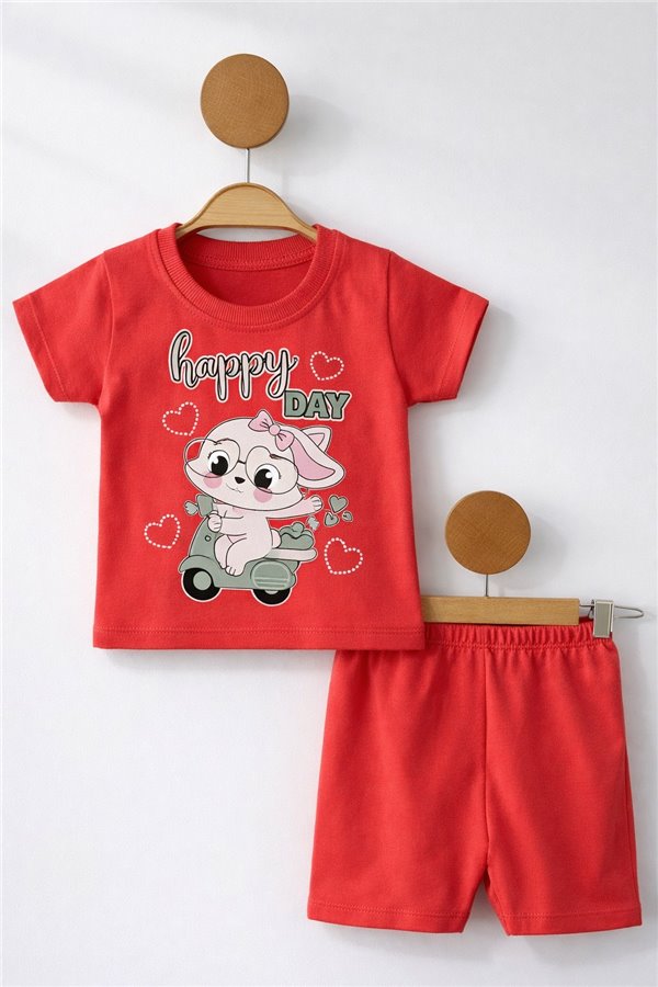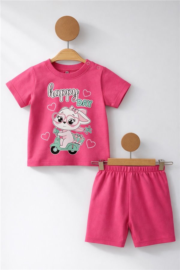 Blkn 6-24 Ay Happy Day Baskılı Kız Bebek Takım Nar Çiçeği