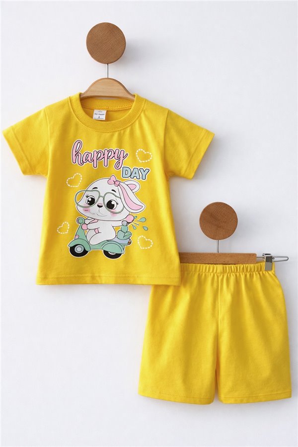 Blkn 6-24 Ay Happy Day Baskılı Kız Bebek Takım Sarı