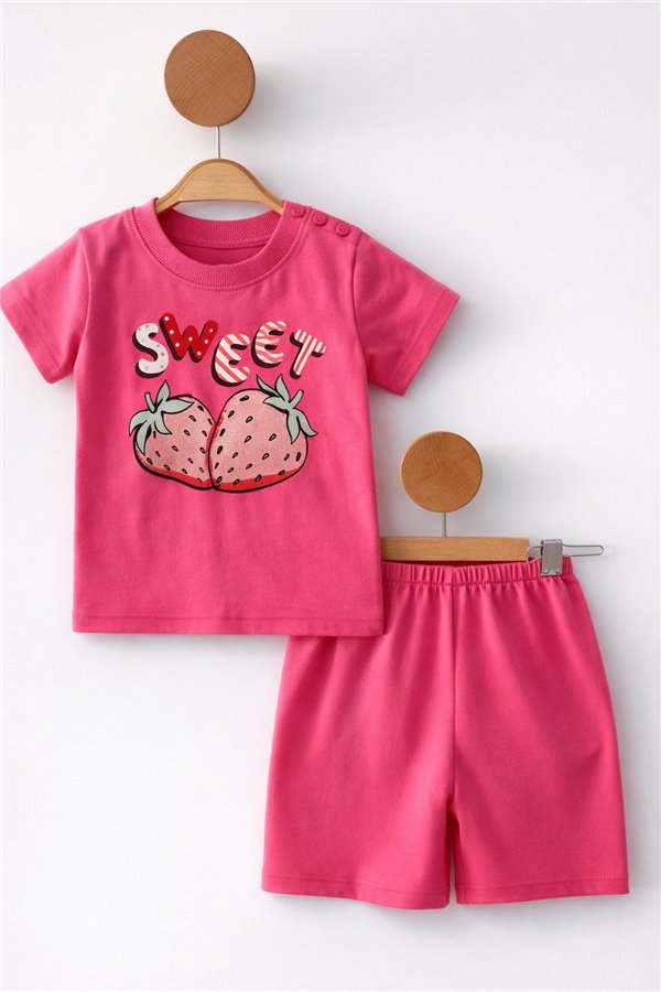 Blkn 6-24 Ay Sweet Çilek Baskılı Kız Bebek Takım Pembe