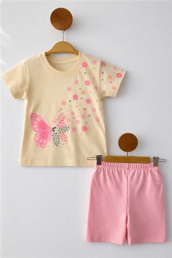 Krc 1-2-3 Yaş Çiçekli Kelebek Baskılı Kız Bebek Takım Pembe