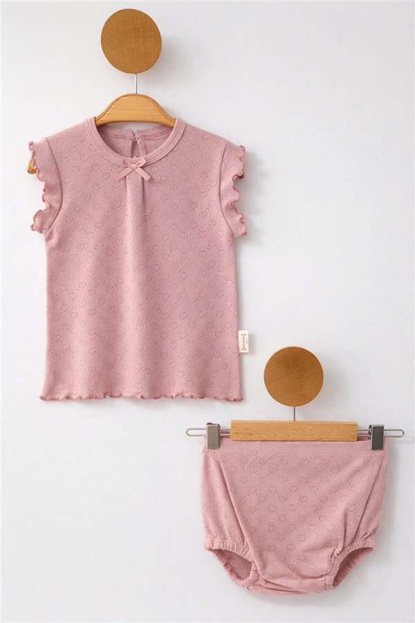Mrt Baby 0-12 Ay Kalp Desen Kız Bebek Takım Gül Kurusu