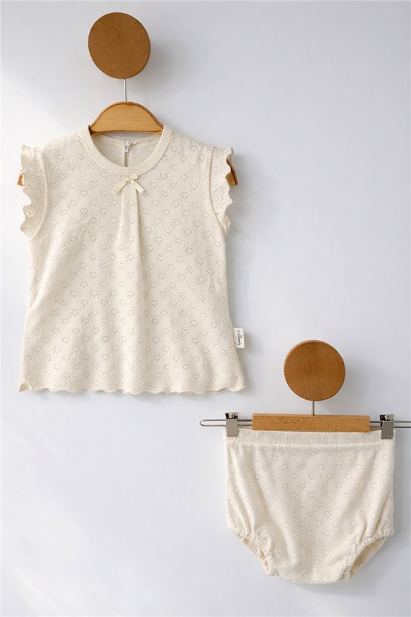 Mrt Baby 0-12 Ay Kalp Desen Kız Bebek Takım Krem