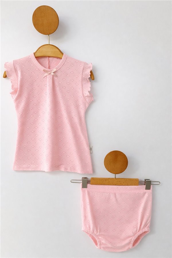 Mrt Baby 0-12 Ay Kalp Desen Kız Bebek Takım Pudra