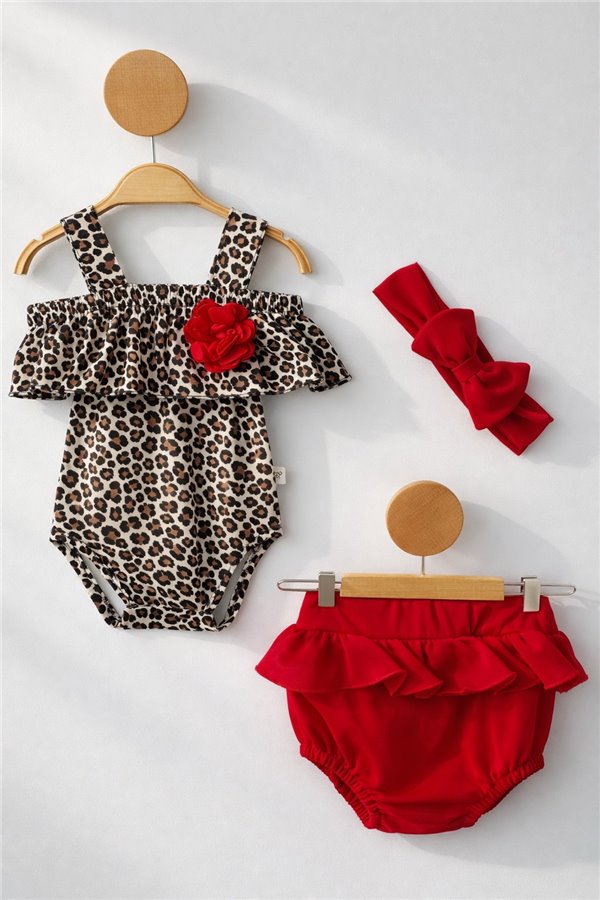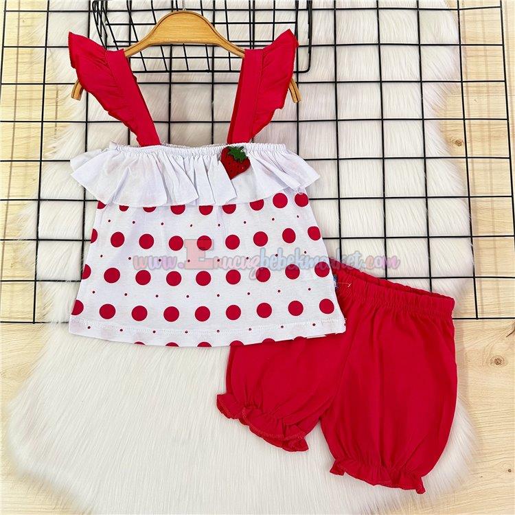 Nazar 6-24 Ay Çilek Detaylı Yazlık Kız Bebek Takım Kırmızı