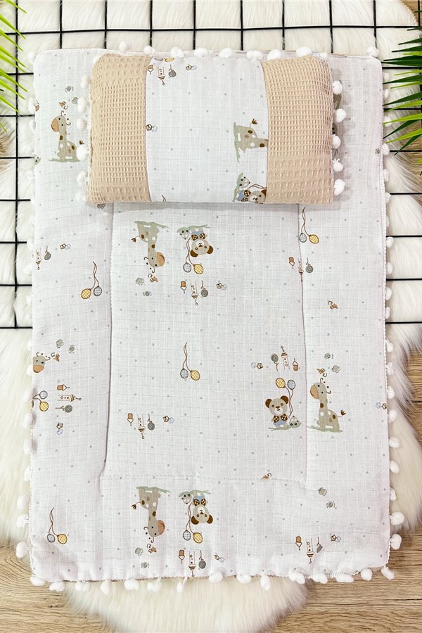Müslin Alt Açma Minderi ve Yastık Ayıcık Bej