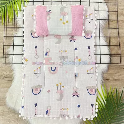 Müslin Alt Açma Minderi ve Yastık Bulut Pembe