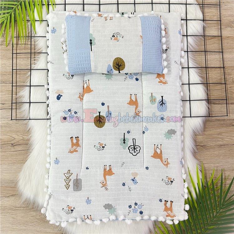 Müslin Alt Açma Minderi ve Yastık Ceylan Mavi