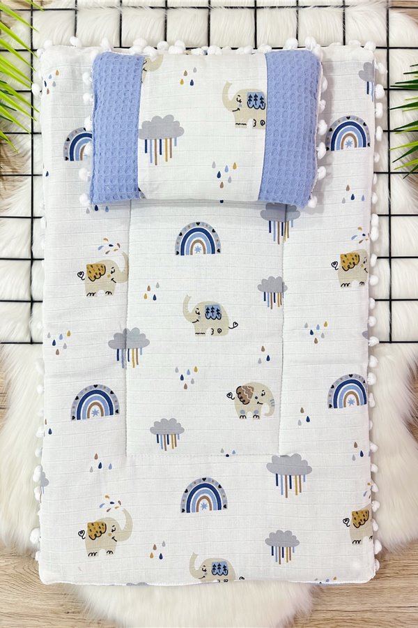 Müslin Alt Açma Minderi ve Yastık Fil Mavi