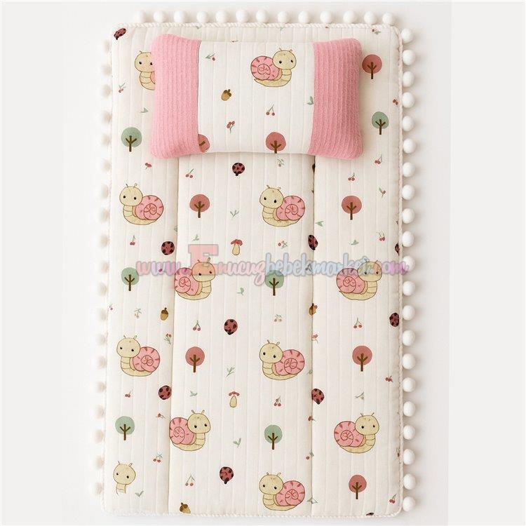 Müslin Alt Açma Minderi ve Yastık Salyangoz Pembe