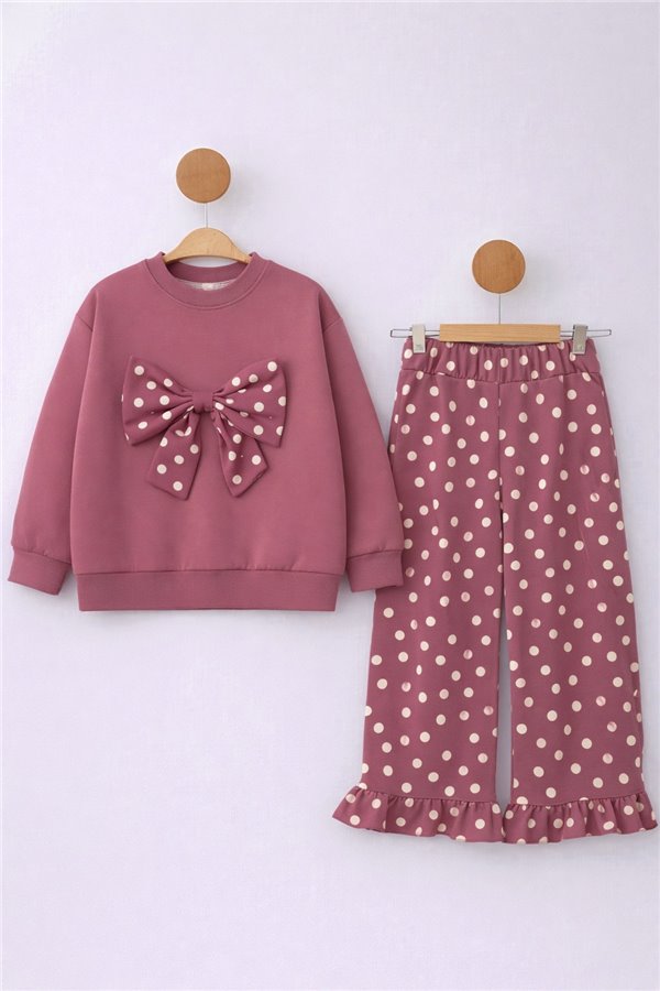 My Bella 2-5 Yaş Penye Kız Çocuk Takım Fiyonklu Gül Kurusu