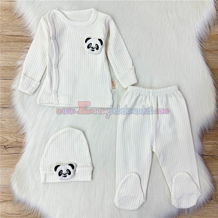Nana Baby 0-3 Ay 3'Lü Bebek Zıbın Panda Detaylı Krem