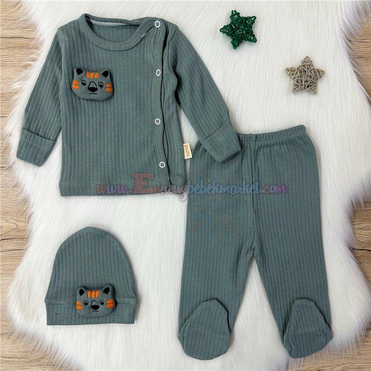 Nana Baby 0-3 Ay 3'Lü Bebek Zıbın Tiger Detaylı Füme