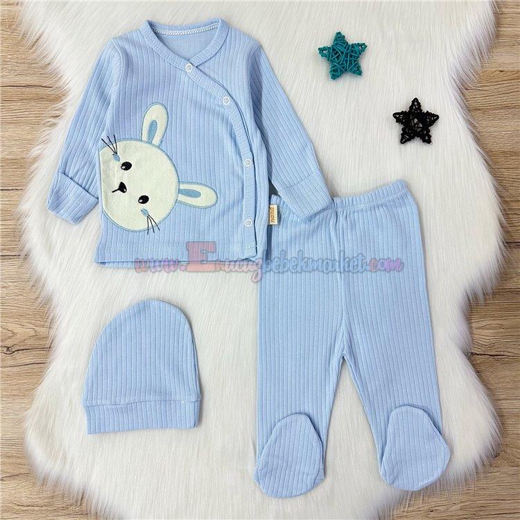 Nana Baby 0-3 Ay 3'Lü Bebek Zıbın Tavşan Nakışlı Mavi