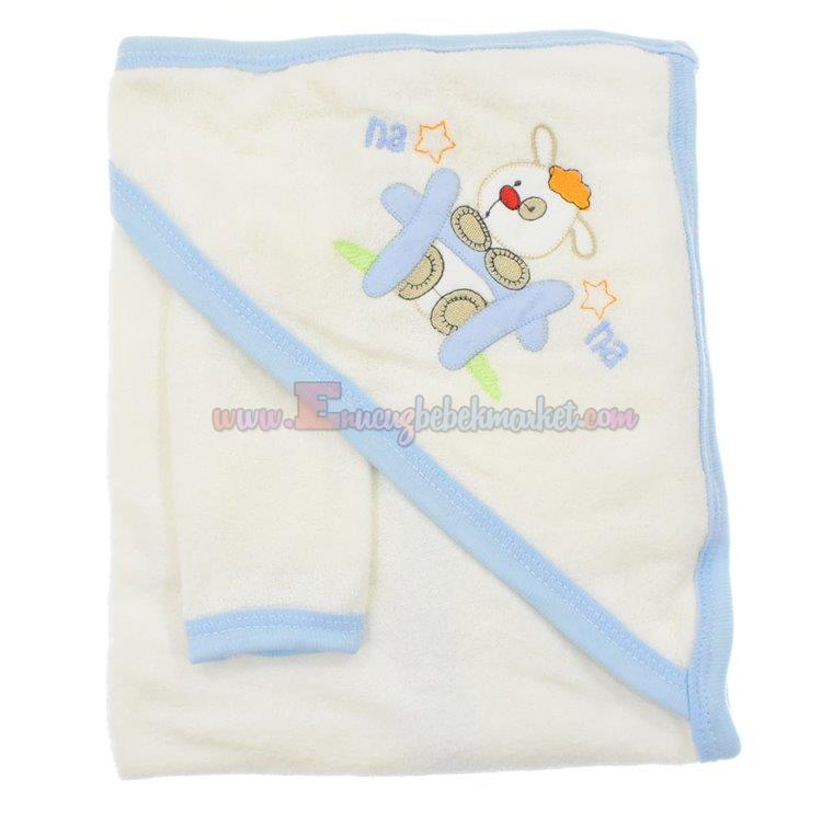 Nana Baby Çitli Ayıcık Nakışlı Bebek Banyo Havlusu Mavi