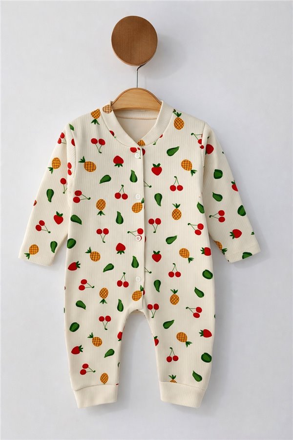 Mıdırık 0-3-6-9 Ay Kaktüs Patikli Penye Bebek Tulum Pudra