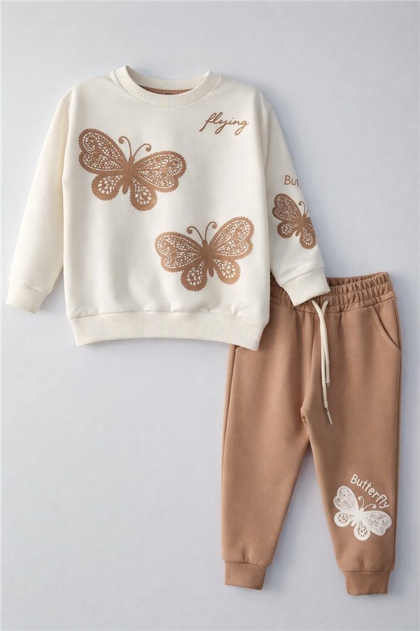 Nazar 3-4-5-6 Yaş Kelebek Detaylı Kız Çocuk Takım Pudra