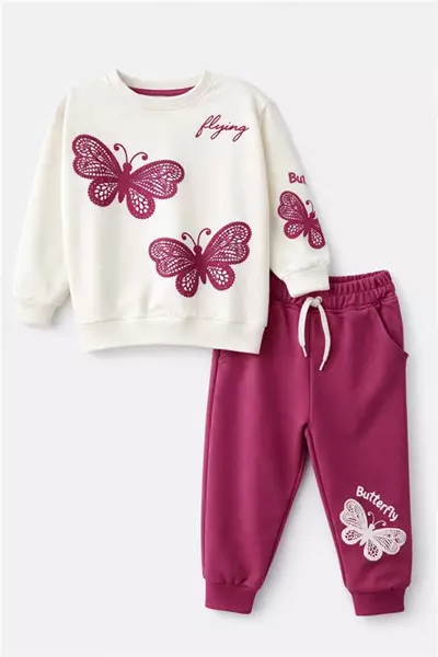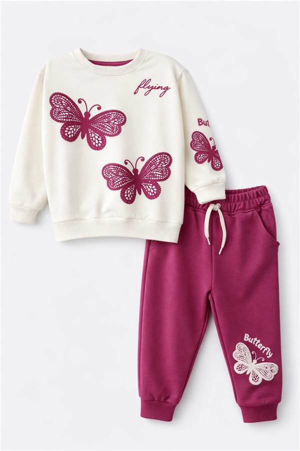 Nazar 3-4-5-6 Yaş Kelebek Detaylı Kız Çocuk Takım Pudra
