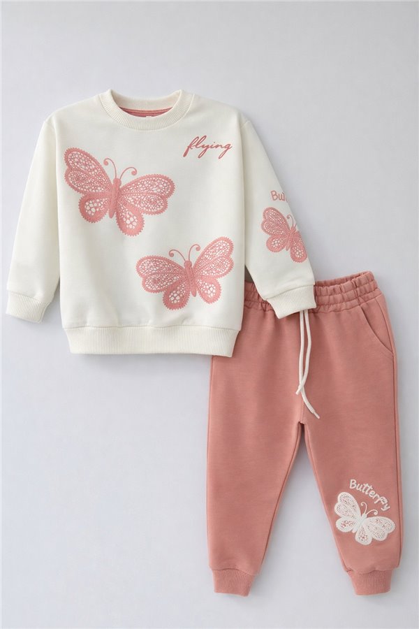 Nazar 3-4-5-6 Yaş Kelebek Detaylı Kız Çocuk Takım Kahverengi