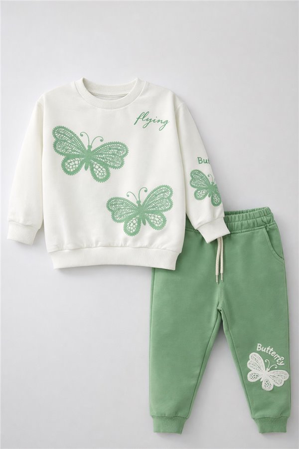 Nazar 3-4-5-6 Yaş Kelebek Detaylı Kız Çocuk Takım Pudra