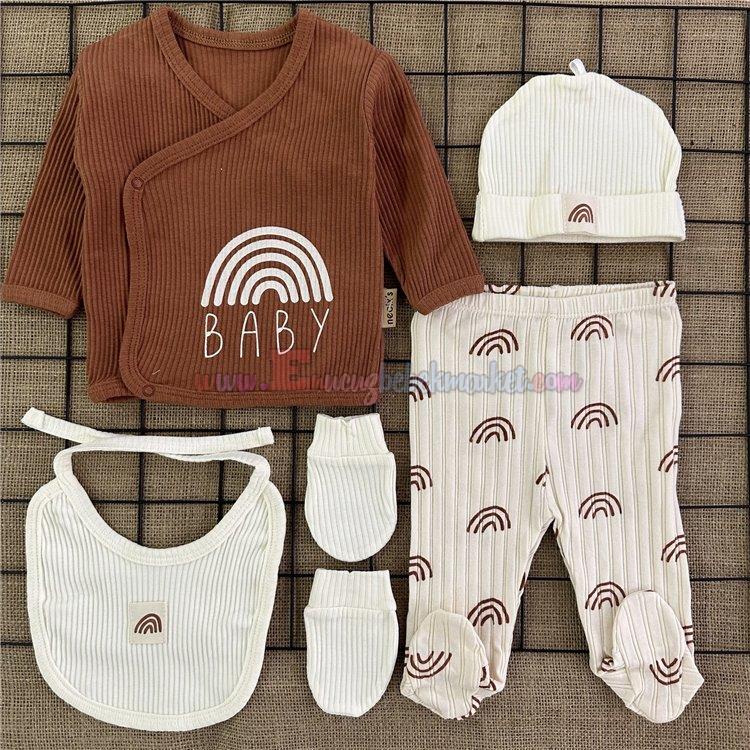 Necixs 0-3 Ay Baby Baskılı Soft 5 Parça Zıbın Takım Çikolata