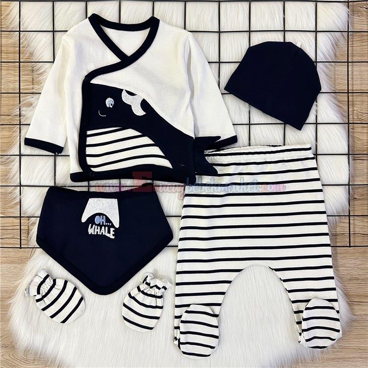Necixs 0-3 Ay Balık Desen 5 Parça Zıbın Takım Lacivert