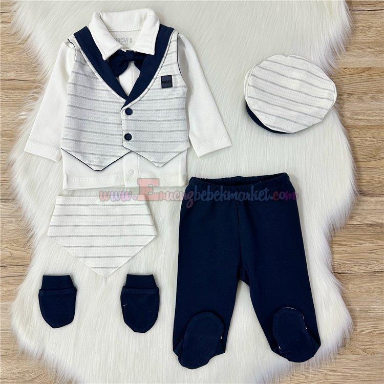 Necixs 0-3 Ay Girne Özgün 5 Parça Zıbın Takım Lacivert