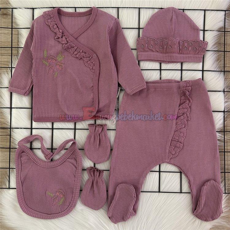 Necixs 0-3 Ay Kopenake Detaylı 5 Parça Zıbın Takım Dusky Orchid