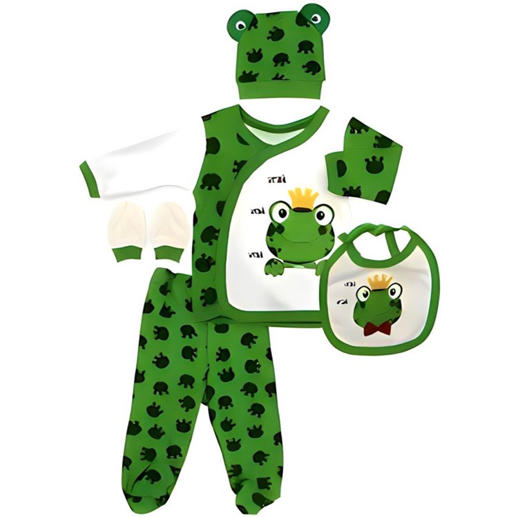 Necixs 0-3 Ay Kurbağa Figürlü 5 Parça Zıbın Takım