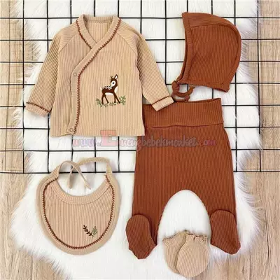 Necixs 0-3 Ay Olso Figürlü 5 Parça Zıbın Takım Kahverengi