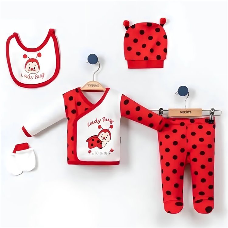 Necixs 0-3 Ay Uğur Böceği Figürlü 5 Parça Zıbın Takım