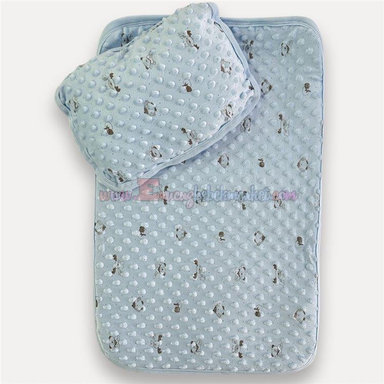 Bebecix Tavşan Figürlü Lux Kundak Renk Mavi Krem