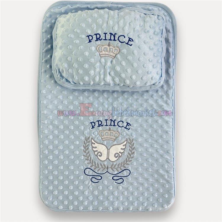 Nohutlu Prince Nakışlı Alt Açma Minderi ve Yastık Set Mavi