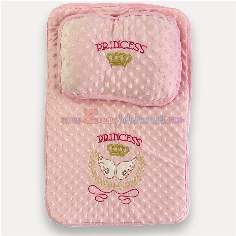 Nohutlu Princess Nakışlı Alt Açma Minderi ve Yastık Set Pembe