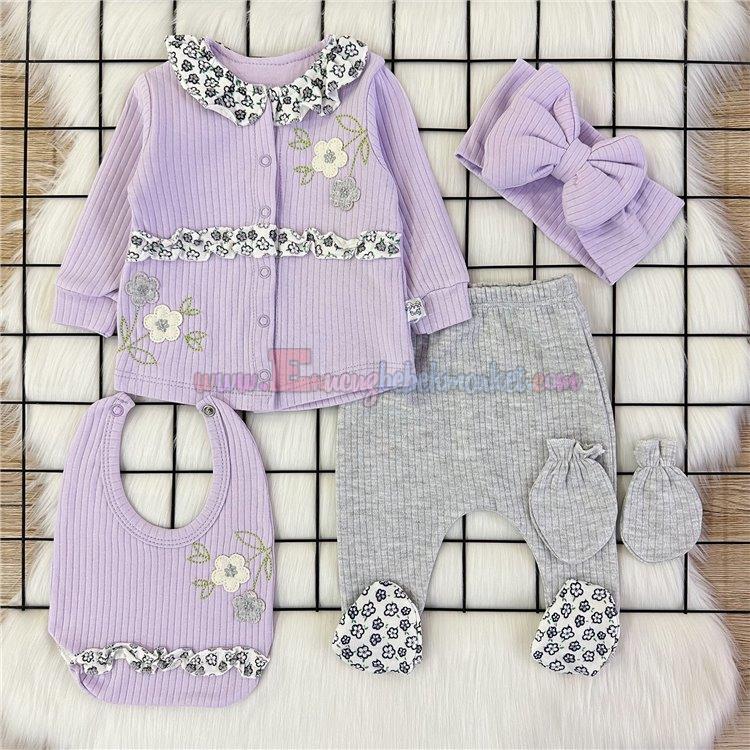 Nonna Baby 0-3 Ay Çiçekli 5 Parça Zıbın Takım Lila