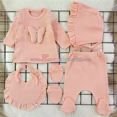 Nonna Baby 0-3 Ay Kelebek 5 Parça Zıbın Takım Pudra