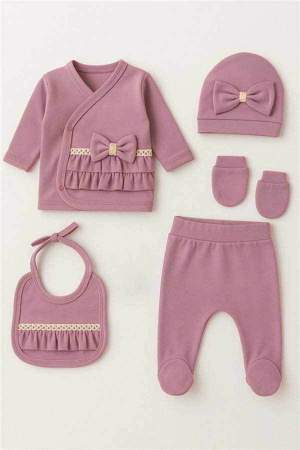 Nz Baby 0-3 Ay 5'Li Zıbın Takım Fırfırlı Fiyonklu Gül Kurusu