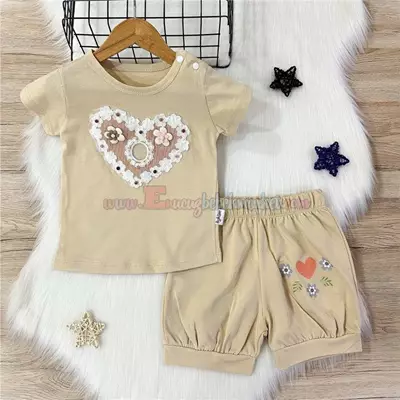 Deco 9-24 Ay Be Kind Baskılı Kız Bebek Takım Kahverengi