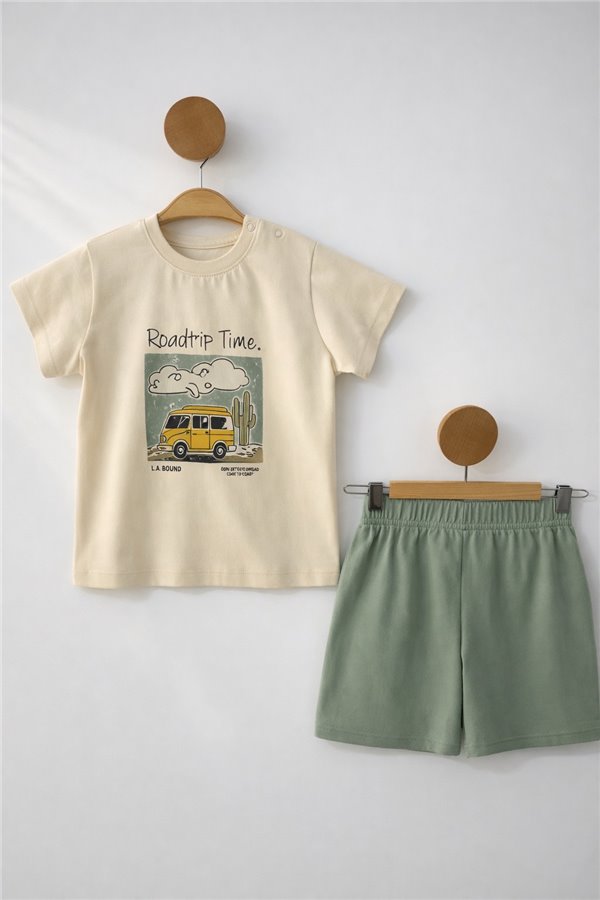 Paffuto 9-24 Ay Araba Baskılı Erkek Bebek Takım Yeşil