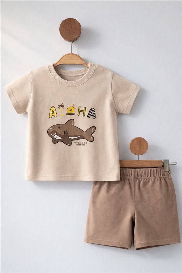Paffuto 9-24 Ay Balık Baskılı Erkek Bebek Takım Kahverengi