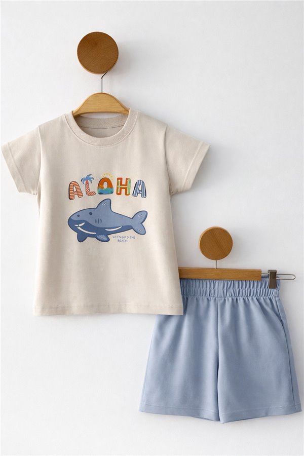 Paffuto 9-24 Ay Balık Baskılı Erkek Bebek Takım Mavi