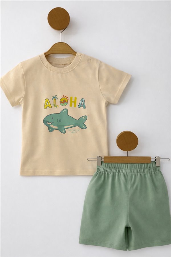Blkn 6-24 Ay Boy Animal Baskılı Erkek Bebek Takım Yeşil