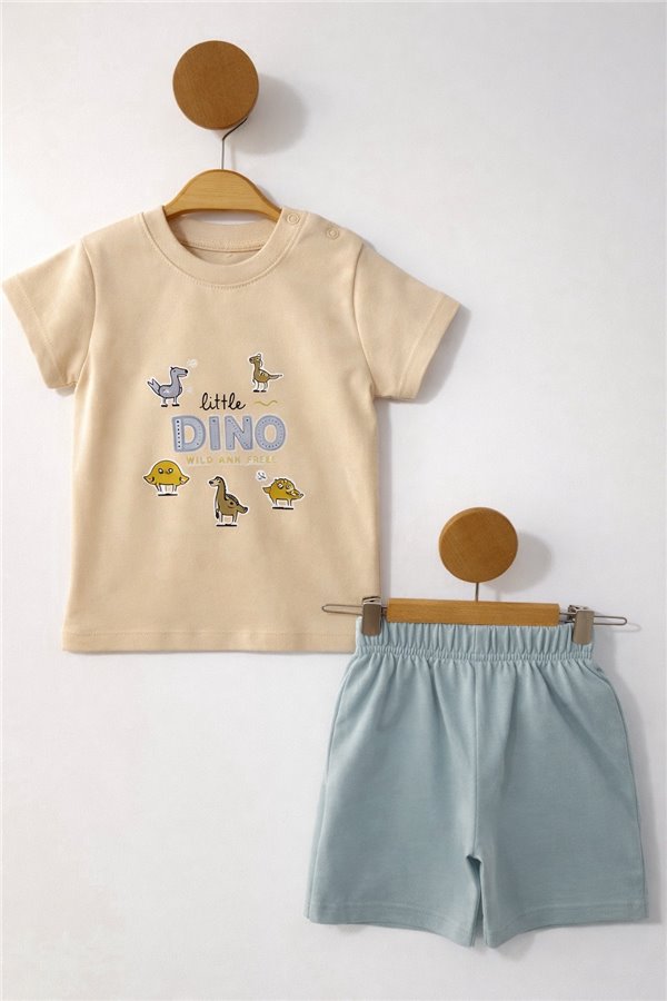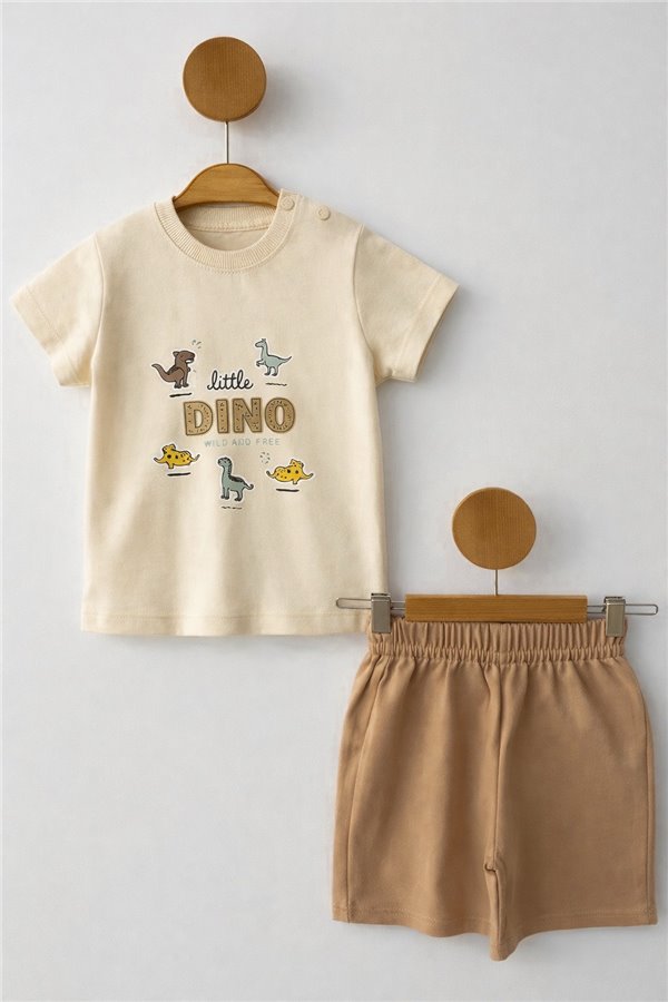 Paffuto 9-24 Ay Dino Baskılı Erkek Bebek Takım Kahverengi