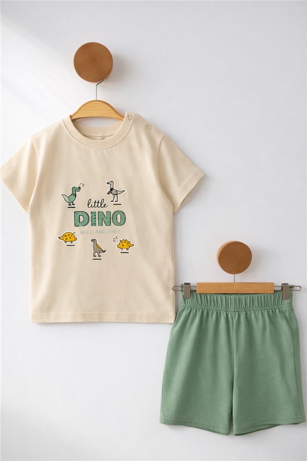 Paffuto 9-24 Ay Dino Baskılı Erkek Bebek Takım Yeşil