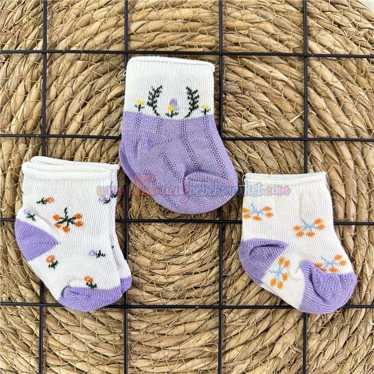 Pamukca 0-3 Ay 3'Lü Bebek Çorap Çiçekli Lila