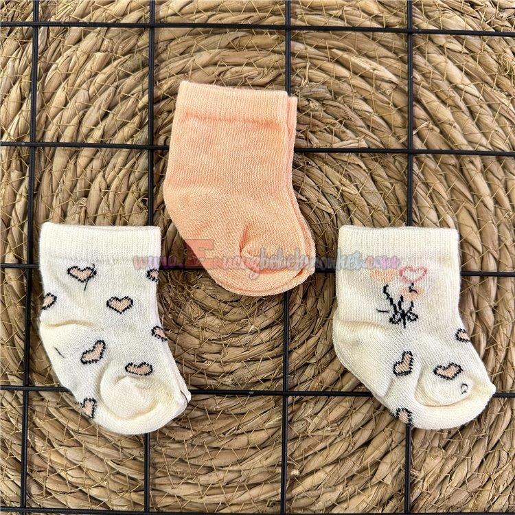 Pamukca 0-3 Ay 3'Lü Bebek Çorap Kalpli Somon